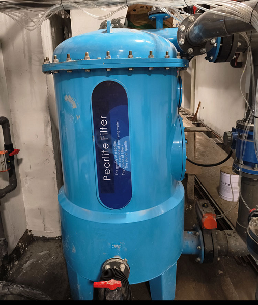 除核心过滤精度外,该系统在环保、节能与运维便捷性上同样表现卓越:无需投加絮凝剂等化学药剂,从源头降低水体二次污染风险,让游泳体验更健康安全;创新滤料再生技术,实现珍珠岩滤材循环利用,相比传统砂缸节省90%水电消耗,且滤料年更换仅需一次,大幅降低综合运维成本;过滤面积是传统砂缸的数倍,占地面积却仅为五分之一,有效节省了泳池机房空间与建筑成本。同时,系统支持远程监控与智能联动,配备故障自检与报警功能,管理人员可实现“零接触”运维,极大提升了设备运行的可靠性与安全性。
