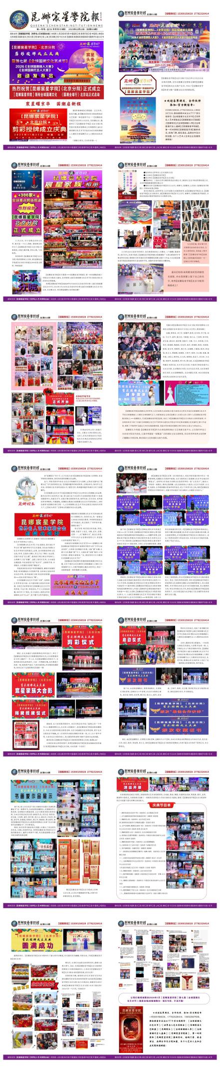 【昆娜宸星学院】官方媒体——《昆娜宸星学院报》,第一时间满幅登载了学院北京分院成立盛况,及学院第七届《全球国潮文化艺术节》(海南会场)启动发布会的报道。