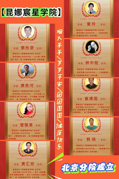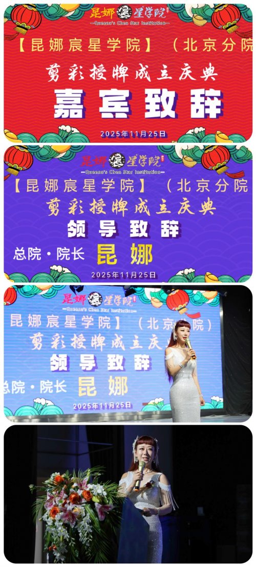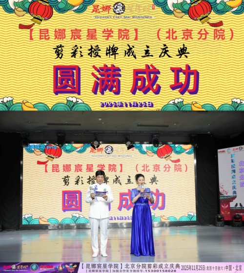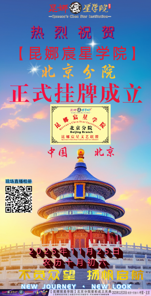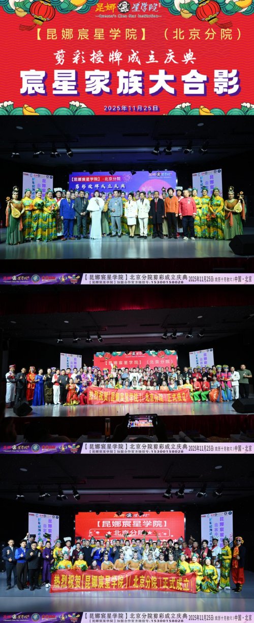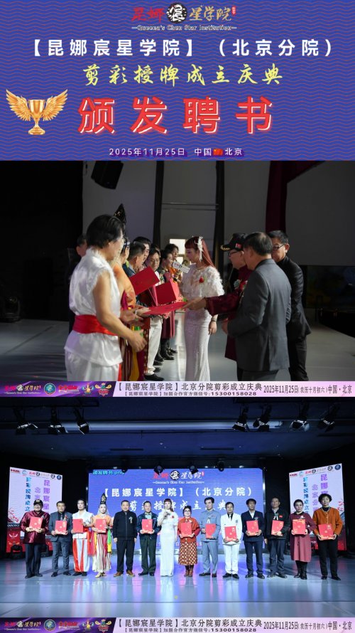 【昆娜宸星学院】北京分院于2025年11月25日在京再次挂牌,宣告以国潮文化领衔全国的【昆娜宸星学院】再次正式落户北京,开启了【昆娜宸星学院】传承与推广国潮文化艺术的新征程。