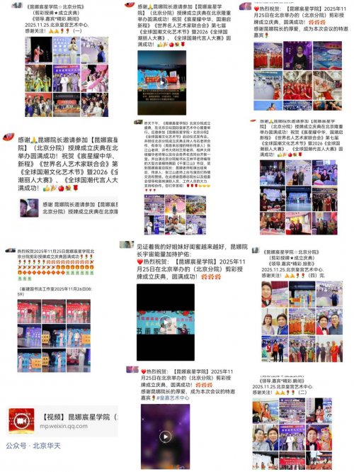 庆典结束当晚,就收到众多艺术家好友在各自朋友圈纷至沓来发来的热烈祝贺!由衷祝贺【昆娜宸星学院】(北京分院)成立庆典活动,圆满举办成功!祝福【昆娜宸星学院】(北京分院)未来大展宏图!2026马年一马当先,马到成功!