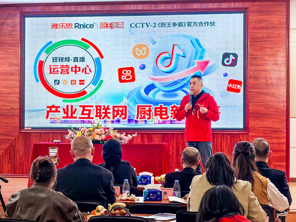 随后,雅乐思厨卫总经理李永成发表主题演讲,重申品牌 “成为厨电新零售领导品牌” 的愿景。他强调,雅乐思已构建 “万镇万店” 生态基础,此次启动3-5年新媒体战略,将依托创赢的全程陪跑运营与抖音来客的平台红利,推动2000家传统门店完成转型。“我们坚持‘不与门店抢客户,坚持用短视频直播赋能门店’,通过百万工厂补贴覆盖门店入驻成本、流量投放,并结合平台佣金减免、流量加油包等福利,保证门店‘卖一台、赚一台’。” 李永成的分享呼应了品牌“产业共富、生态共建、客户共创、合作共赢”的新零售理念。