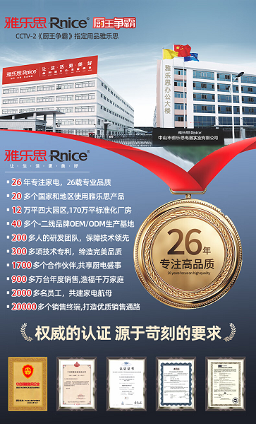 雅乐思厨卫深耕厨房电器26年,有“厨小行业富士康”的美誉,是海底捞全球产品服务商。品牌以品质为先,服务为尊,“智”造厨房,为消费者提供高端厨房的优选解决方案,为更多家庭带来全新的烹饪体验。