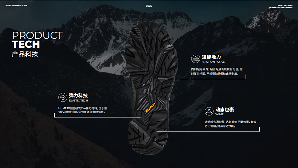 在产品端,其自主研发的EVA弹力缓震材料、动态包裹系统、强抓地力防滑底等核心技术,广泛应用于登山鞋、徒步鞋、越野鞋等全列产品。品牌更联合国际材料巨头EVENT、杜邦,引入军工级防水透气技术,推出系列冲锋衣,树立专业户外性能新标杆。