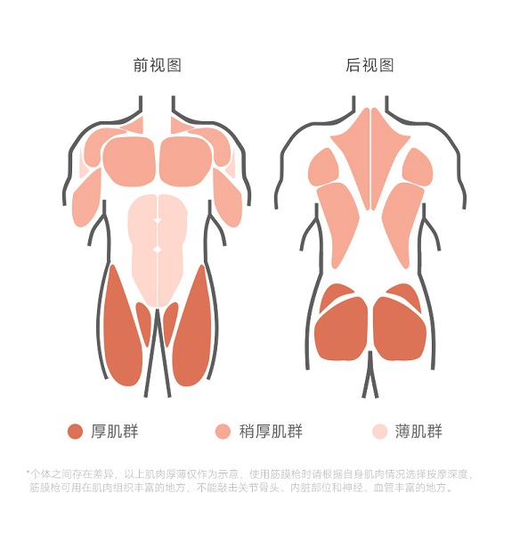 人体全身肌肉多达600+块,有的肌肉厚实,有的肌肉纤薄,且不同个体的肌肉状态之间也存在差异。为了达到理想的放松效果,不同肌肉深度和厚度不同,需要不同振幅(按摩深度)才能放松。